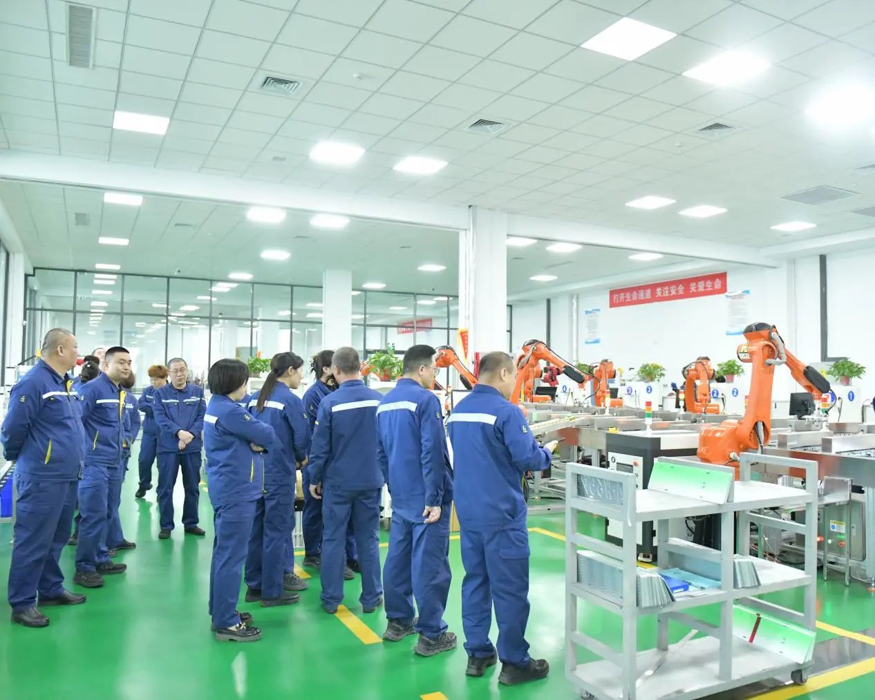 在号牌中心一部王树文经理现场讲解下,二部员工学习了机动车号牌半成品、电动自车号牌和固封装置的全生产流程,近距离观摩了零拉伸覆膜设备、无边框落料设备、机械手流水线、智能定位签注设备、自动打包系统和机械手码垛等智能化设备的高效运转流程。